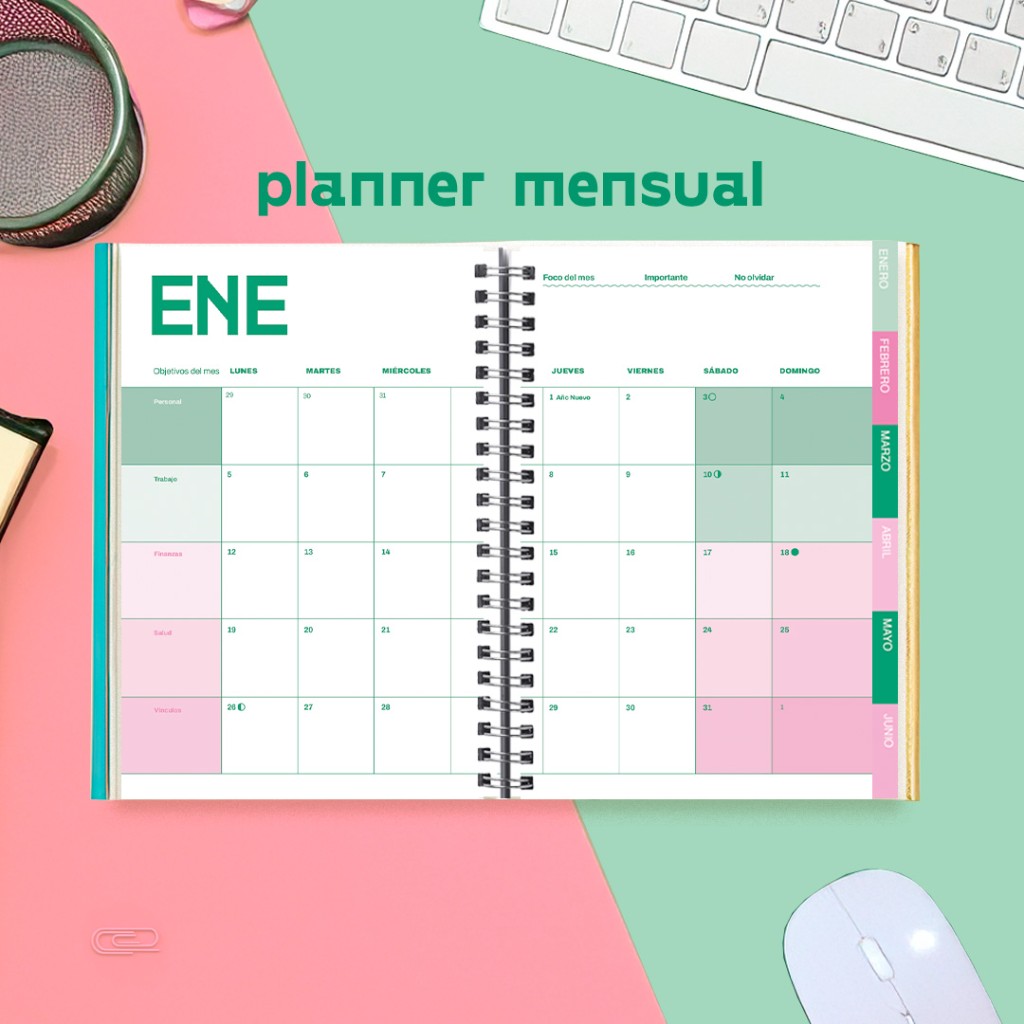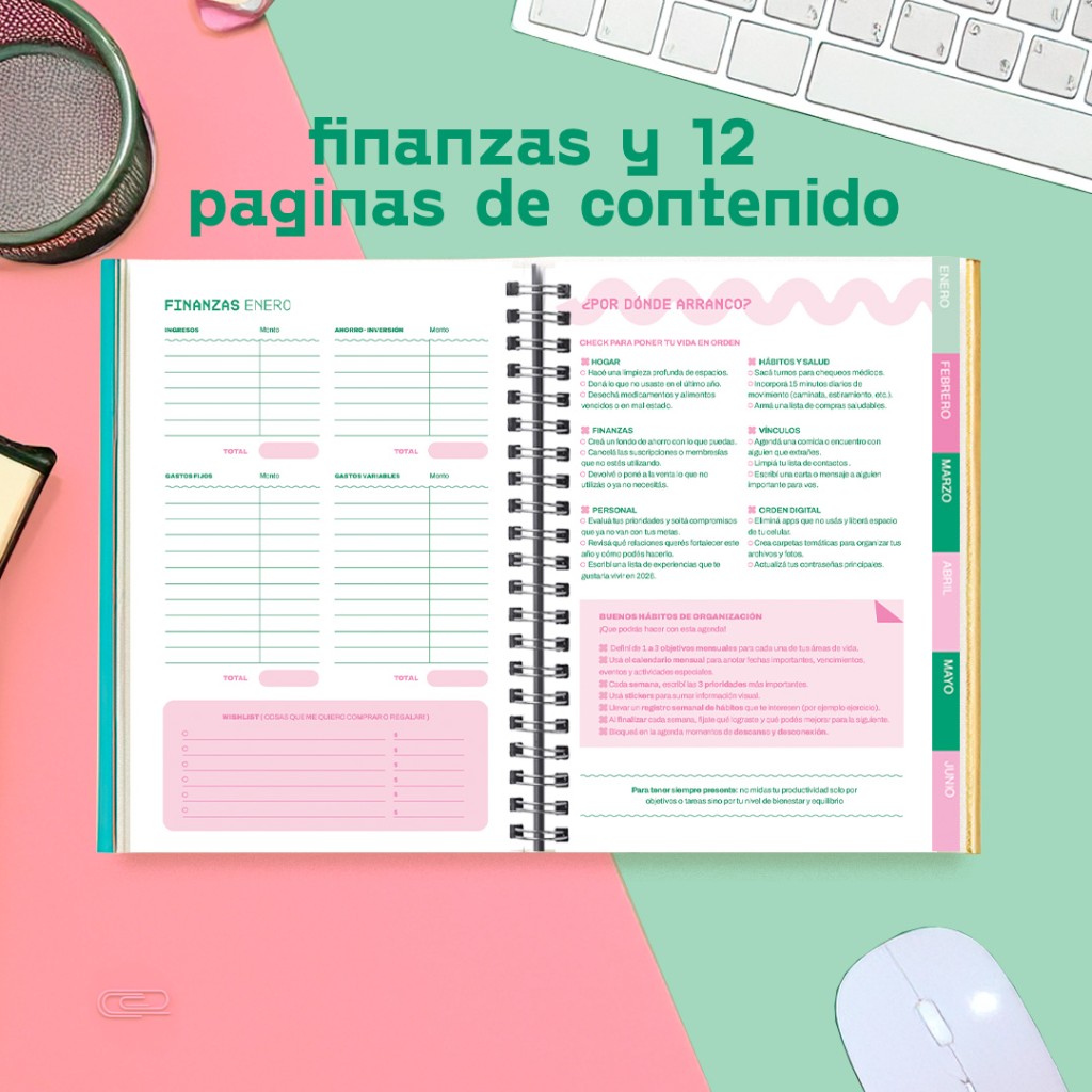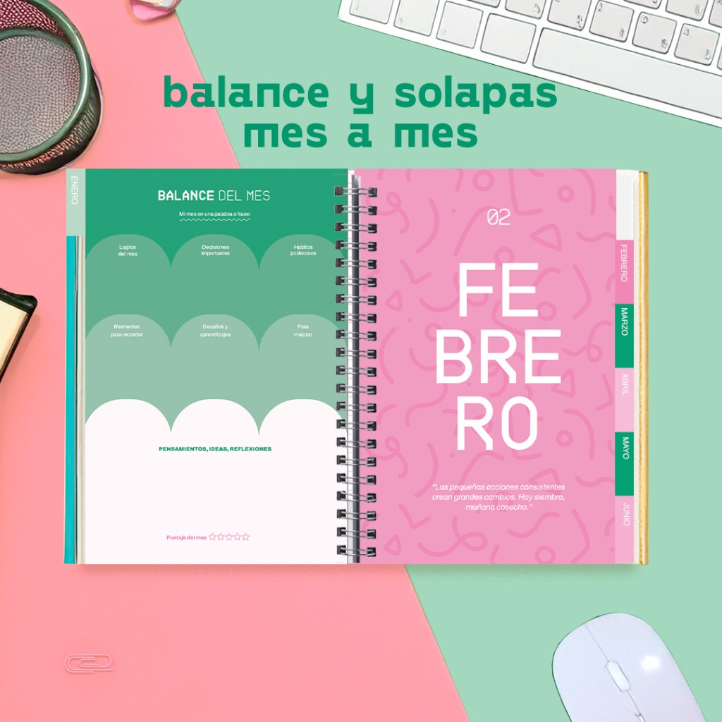 → Sus secciones integran lo cotidiano ✍ (finanzas, hábitos, calendario) con lo personal 🧘♀️ (reflexión, proyectos, autocuidado).